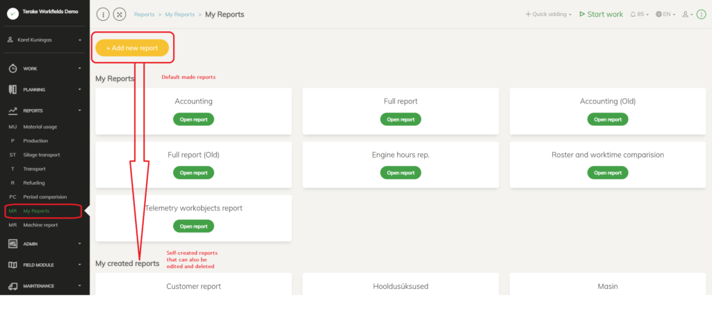 You can create your own monthly reports in the My Reports sub-menu. There are My reports, the columns of which you can configure, but you can add a new report under the button +Add a new report by adding your own report